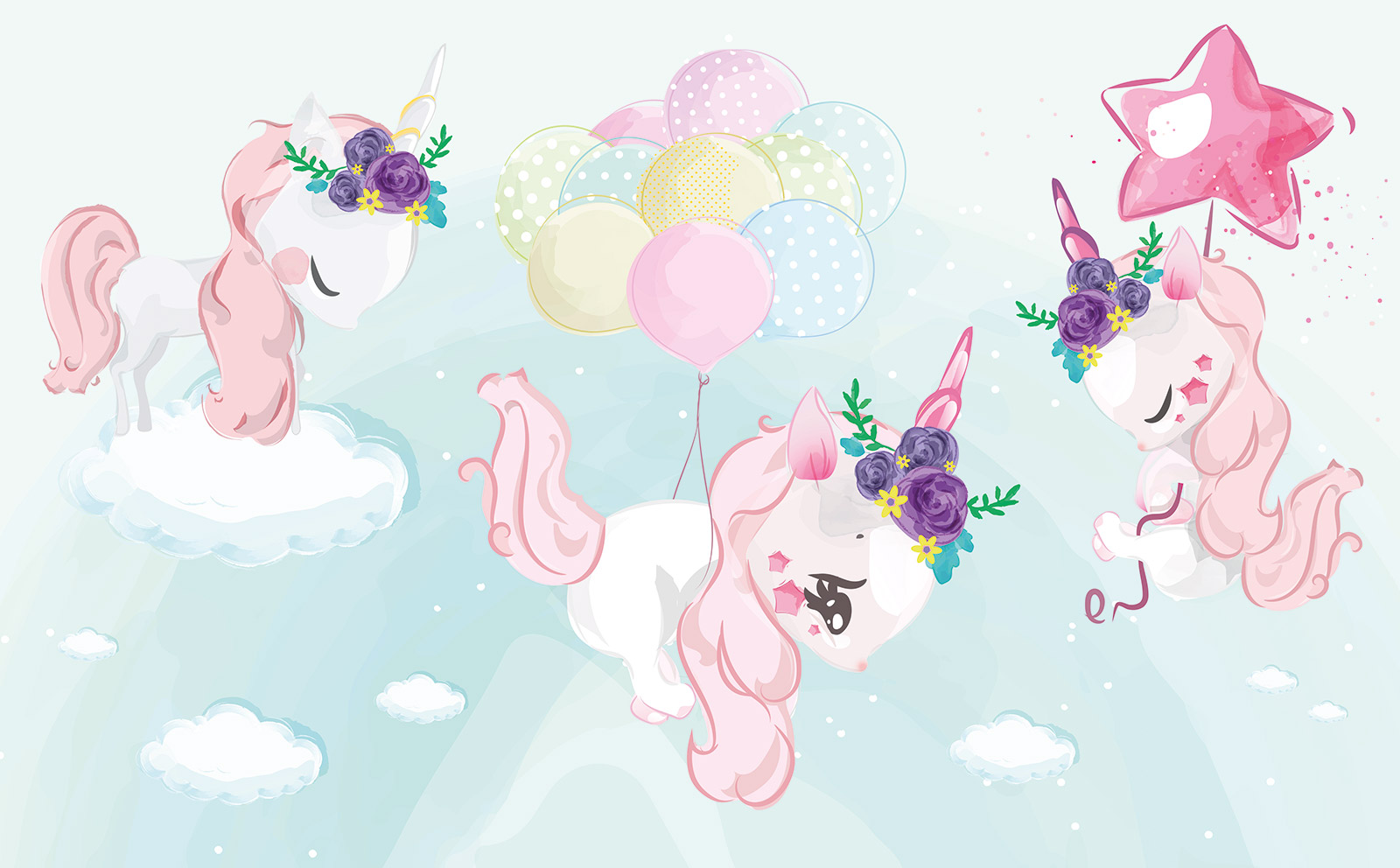 Fototapete Kinderzimmer - Einhorn-Ballons
