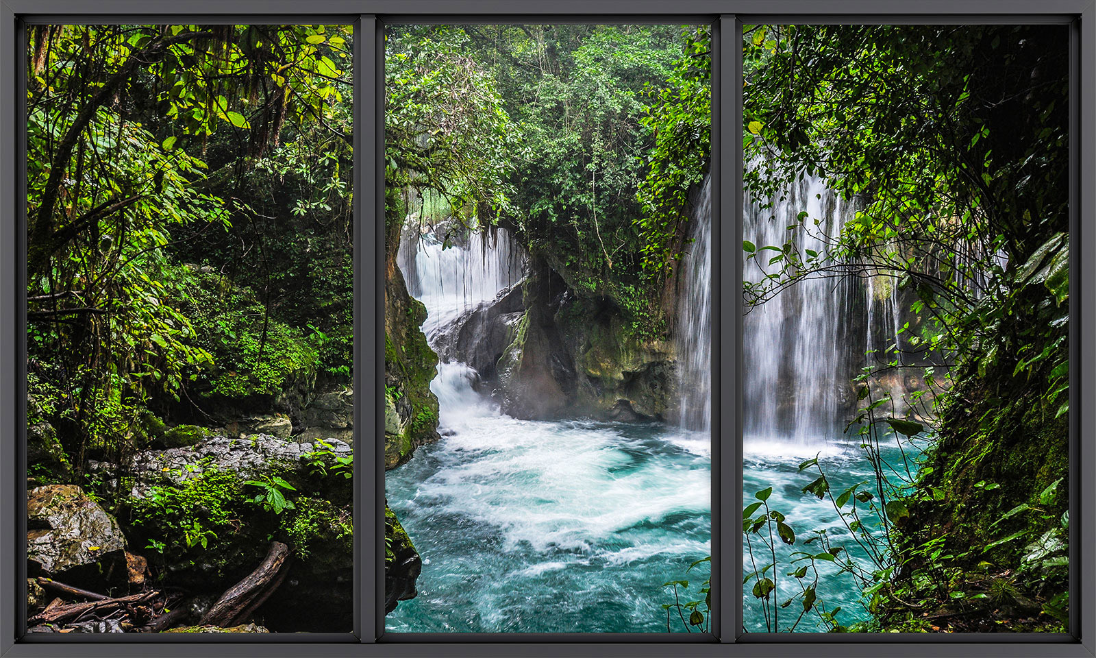 www.lumalea.de > Tapeten > Panoramische Tapeten > Tapeten 3D-Effekt > Fensterfronten 3D-Effekt > Fototapeten 3D Optische Täuschung - Kaskade