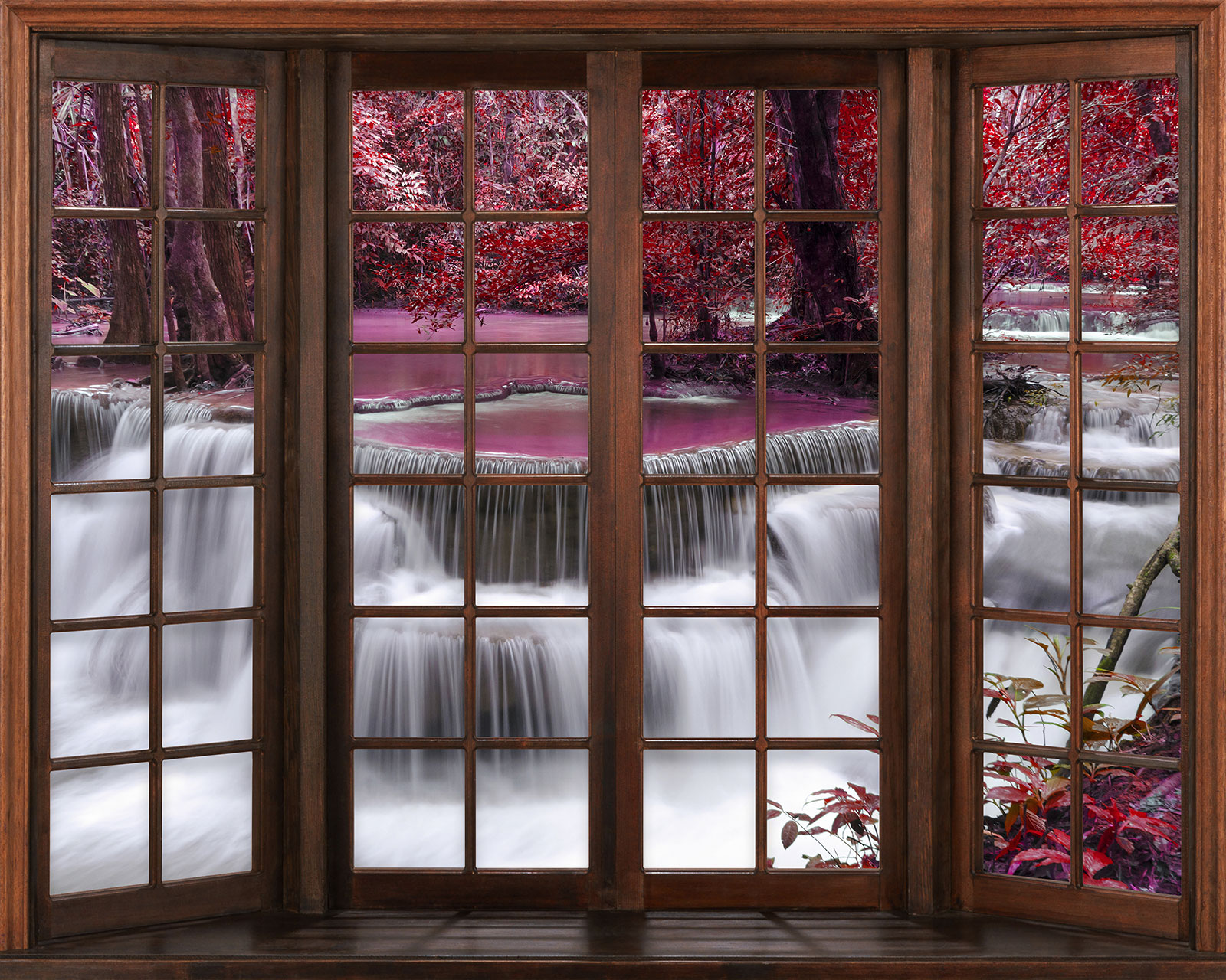 www.lumalea.de > Tapeten > Panoramische Tapeten > Tapeten 3D-Effekt > Fenster 3D-Effekt > Fototapeten 3D Optische Täuschung - Kaskaden