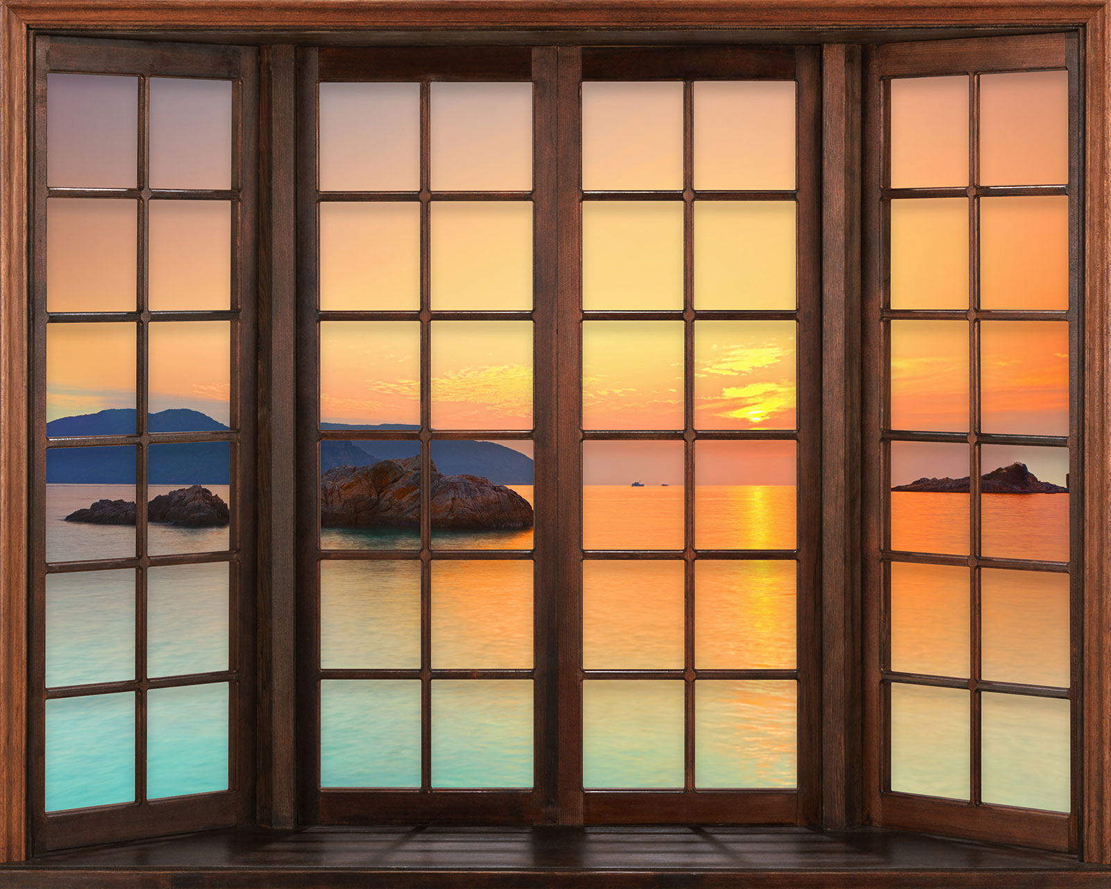 www.lumalea.de > Tapeten > Panoramische Tapeten > Tapeten 3D-Effekt > Fenster 3D-Effekt > Fototapeten 3D Optische Täuschung - Meerblick