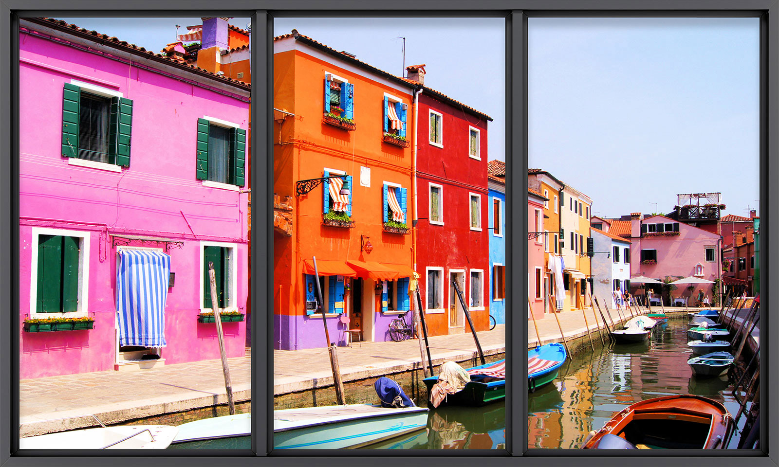 www.lumalea.de > Tapeten > Panoramische Tapeten > Tapeten 3D-Effekt > Fensterfronten 3D-Effekt > Fototapeten 3D Optische Täuschung - Stadt Burano