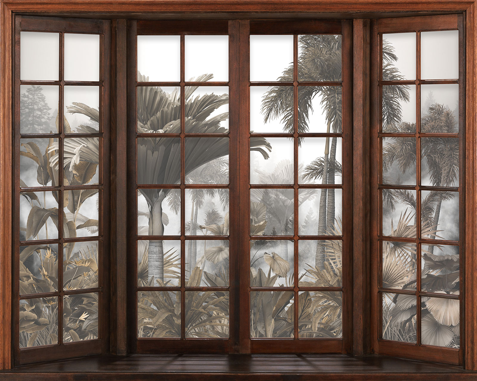 www.lumalea.de > Tapeten > Panoramische Tapeten > Tapeten 3D-Effekt > Fenster 3D-Effekt > Fototapeten 3D Optische Täuschung - Tropischer Regenwald