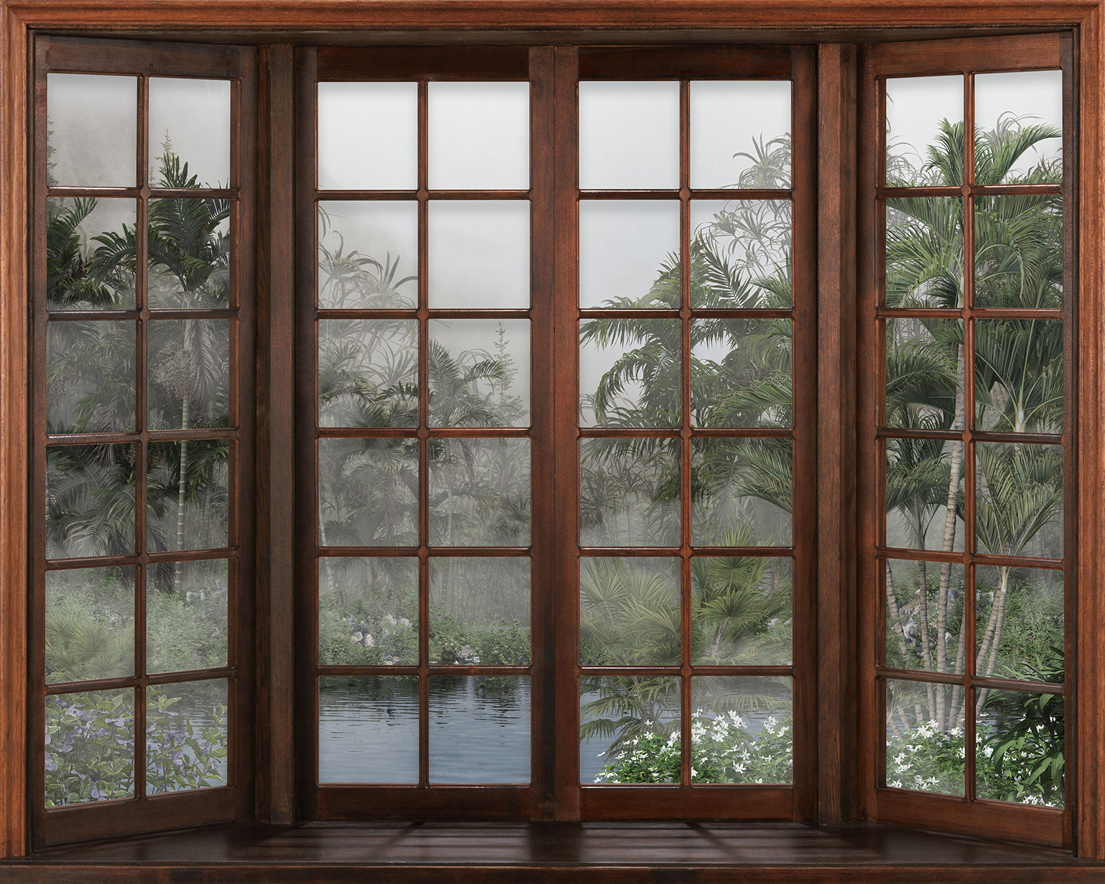 www.lumalea.de > Tapeten > Panoramische Tapeten > Tapeten 3D-Effekt > Fenster 3D-Effekt > Fototapeten 3D Optische Täuschung - Tropischer Regenwald