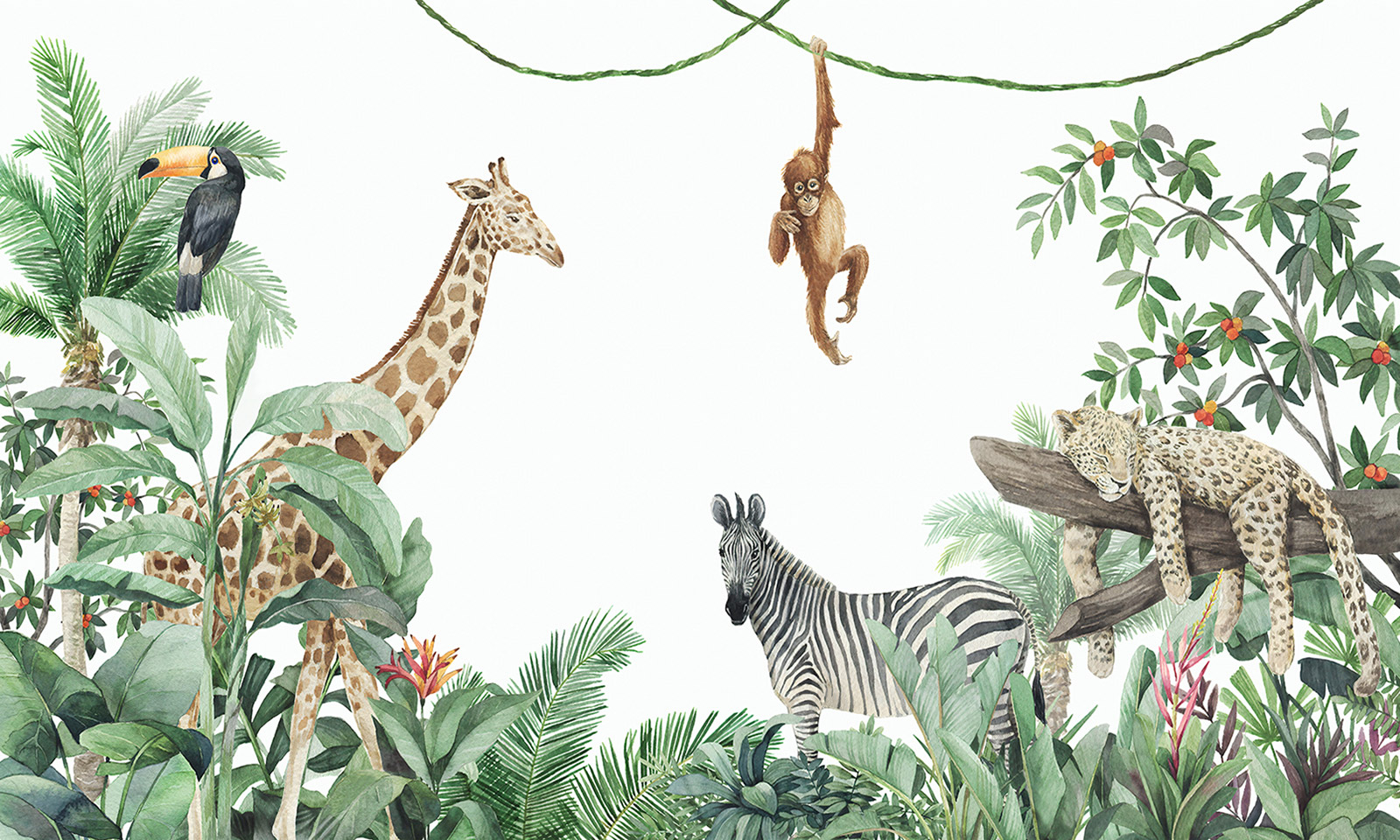 www.lumalea.de > Tapeten > Panoramische Tapeten > Für die Kinder > Panoramische Tapeten > Panorama-Tapete Kinder - Dschungeltiere