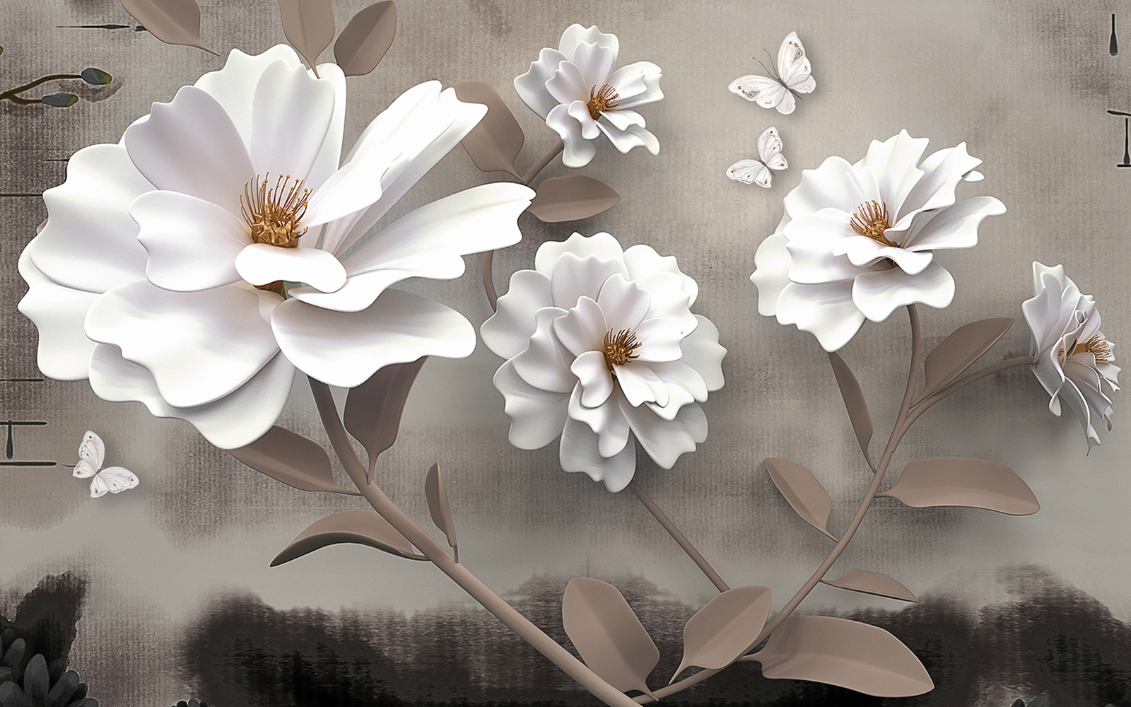 Panoramatapete - 3D-Blumen