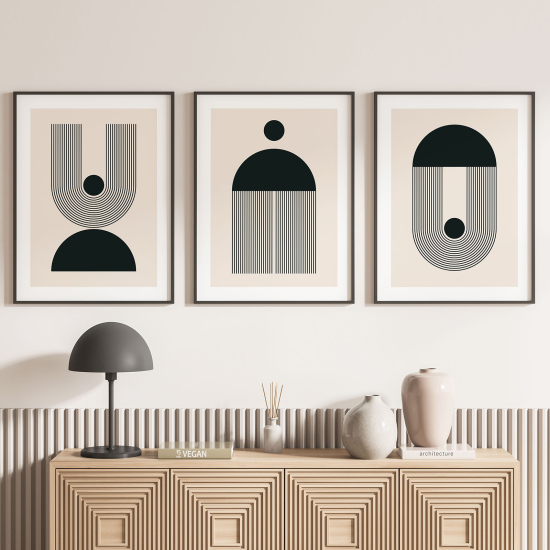 Die moderne Kunst ist eine unerschöpfliche Inspirationsquelle, und unsere modernen Triptychon-Poster sind darauf ausgelegt, Ihnen zu ermöglichen, eine außergewöhnliche und individuelle Dekoration zu schaffen. Jedes Triptychon ist ein zeitgenössisches Kunstwerk, und wir bieten Ihnen die Möglichkeit, aus verschiedenen Passepartout-Effekten zu wählen, um Ihrer Kreation eine einzigartige Note zu verleihen.
