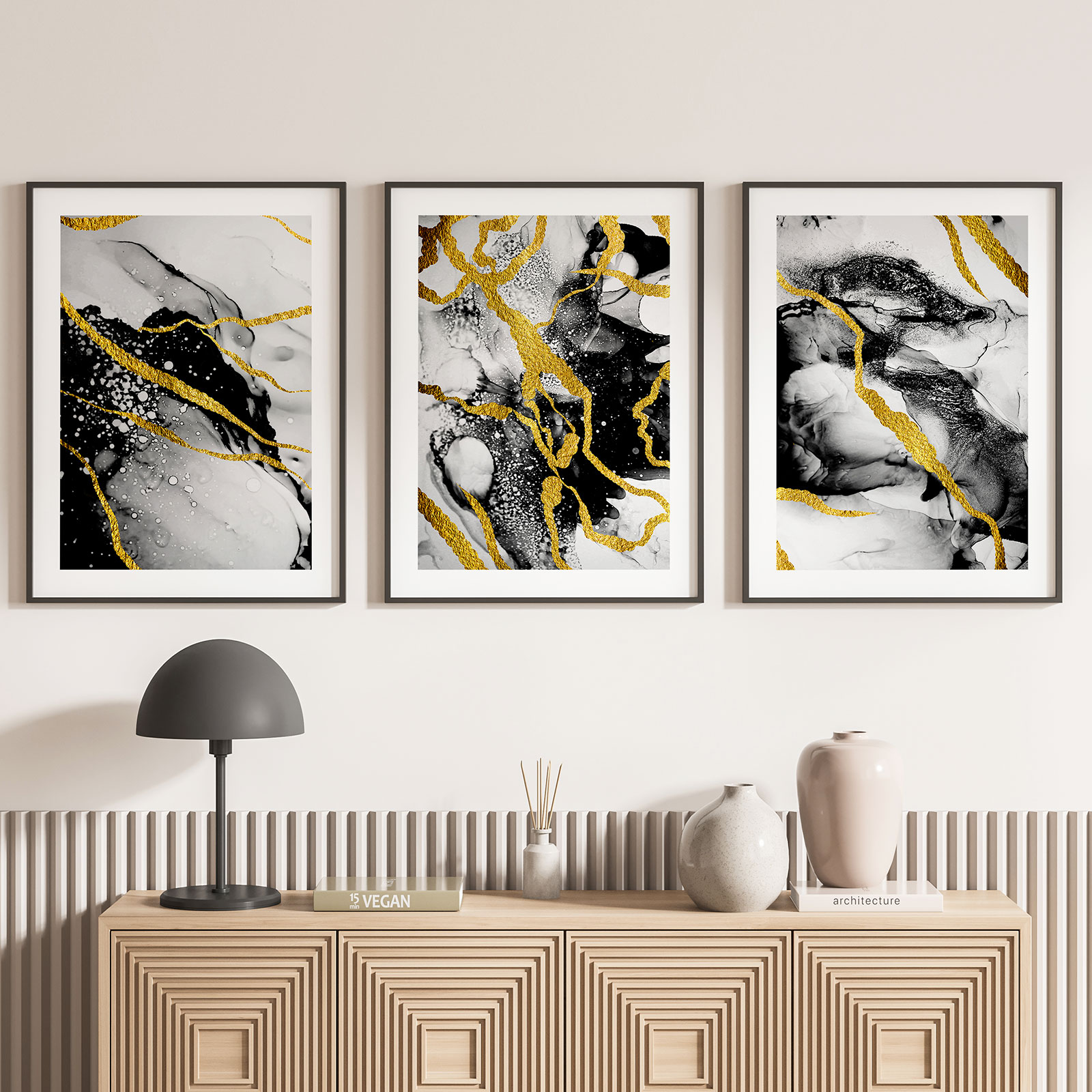Modernes Dekor: Unsere modernen Triptychon-Poster werden sofort zum Blickfang in jedem Raum. Sie verleihen Ihrer Inneneinrichtung eine zeitgemäße und elegante Note und schaffen eine Atmosphäre, die inspiriert und fesselt.