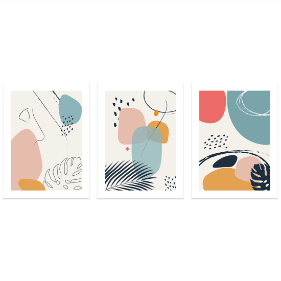 Die moderne Kunst ist eine unerschöpfliche Inspirationsquelle, und unsere modernen Triptychon-Poster sind darauf ausgelegt, Ihnen zu ermöglichen, eine außergewöhnliche und individuelle Dekoration zu schaffen. Jedes Triptychon ist ein zeitgenössisches Kunstwerk, und wir bieten Ihnen die Möglichkeit, aus verschiedenen Passepartout-Effekten zu wählen, um Ihrer Kreation eine einzigartige Note zu verleihen.
