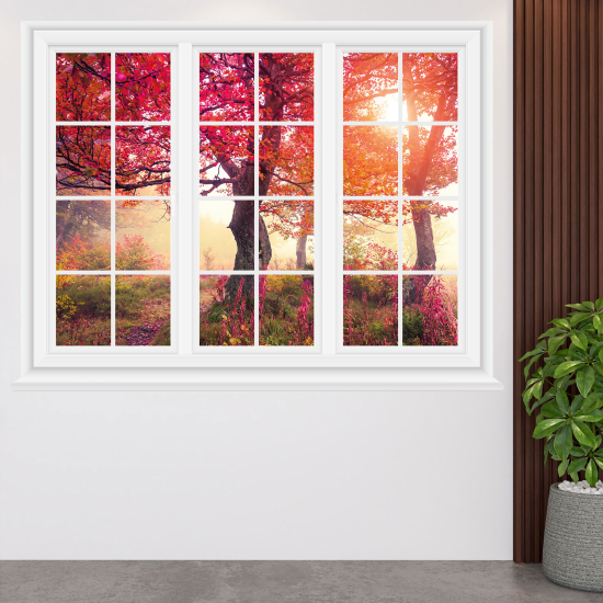 3D Wandtattoo - Optische Täuschung - Bäume mit rosa Blättern