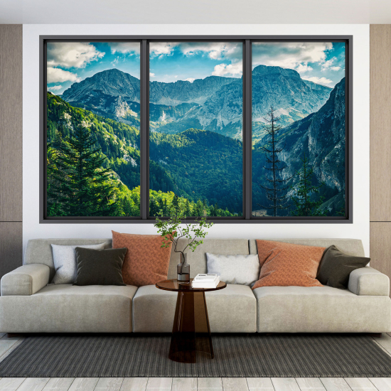 www.lumalea.de > Aufkleber > Wandtattoos 3D-Effekt > Aluminium-Fensteraufkleber 3D-Effekt > 3D Wandtattoo - Optische Täuschung - Berge
