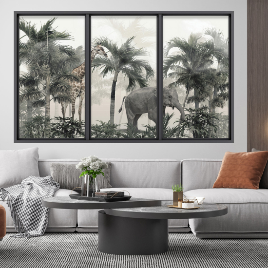 www.lumalea.de > Aufkleber > Wandtattoos 3D-Effekt > Aluminium-Fensteraufkleber 3D-Effekt > 3D Wandtattoo - Optische Täuschung - Dschungeltiere