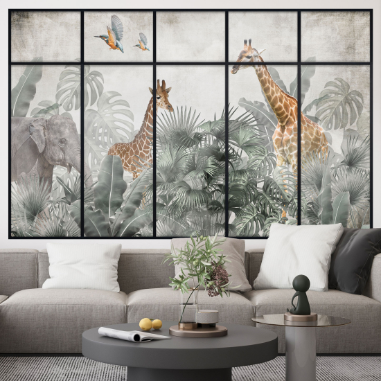 www.lumalea.de > Aufkleber > Wandtattoos 3D-Effekt > Falsche Glasaufkleber 3D-Effekt > 3D Wandtattoo - Optische Täuschung - Dschungeltiere