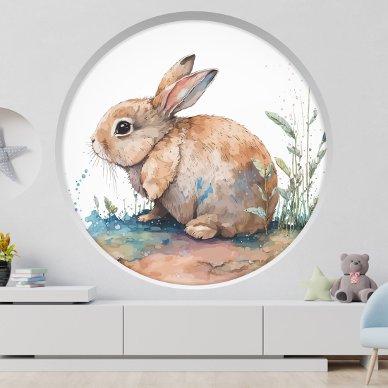 www.lumalea.de > Aufkleber > Wandtattoos 3D-Effekt > Wandtattoos Rundbögen rund > 3D Wandtattoo - Optische Täuschung für Kinderzimmer - Hase