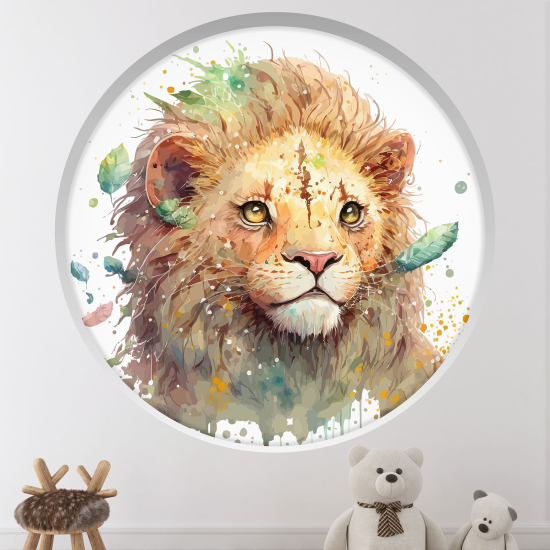 www.lumalea.de > Aufkleber > Wandtattoos 3D-Effekt > Wandtattoos Rundbögen rund > 3D Wandtattoo - Optische Täuschung für Kinderzimmer - Löwe