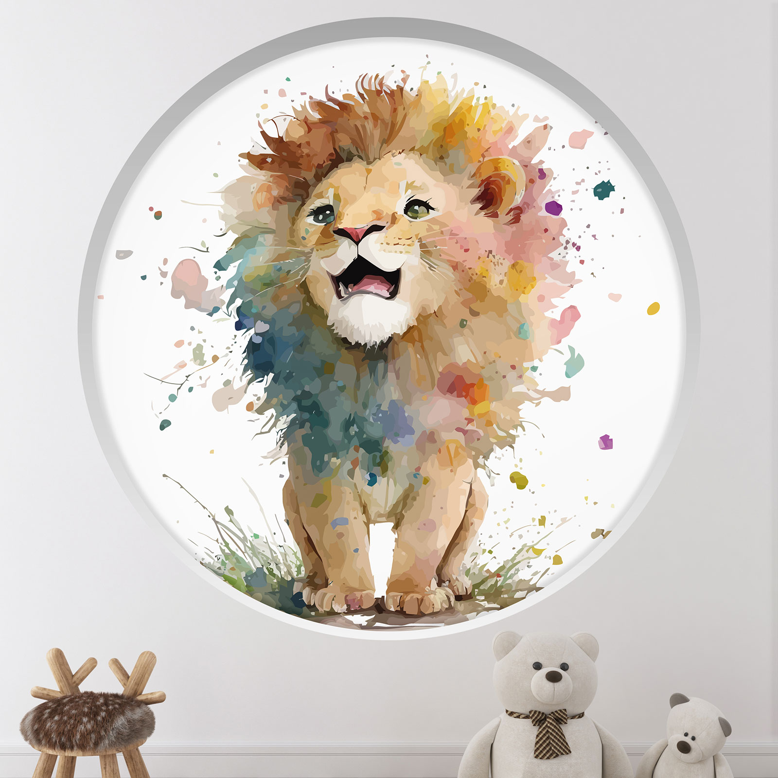 3D Wandtattoo - Optische Täuschung für Kinderzimmer - Löwe