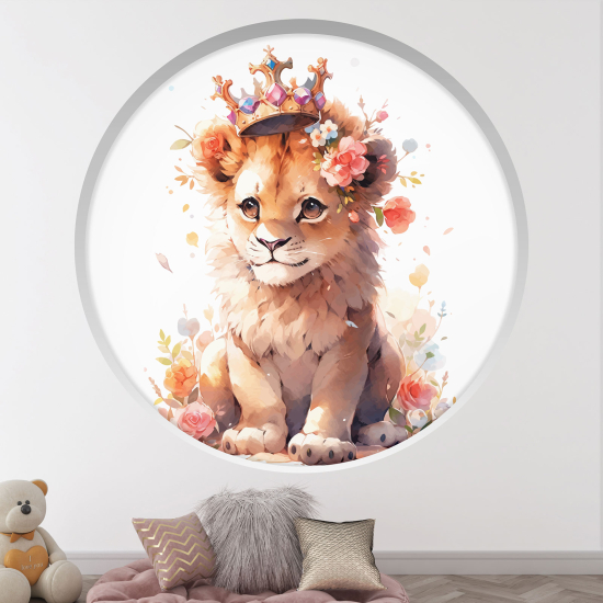 www.lumalea.de > Aufkleber > Wandtattoos 3D-Effekt > Wandtattoos Rundbögen rund > 3D Wandtattoo - Optische Täuschung für Kinderzimmer - Löwe