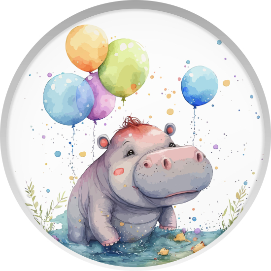 3D Wandtattoo - Optische Täuschung für Kinderzimmer - Nilpferd Ballons