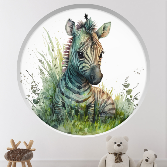 www.lumalea.de > Aufkleber > Wandtattoos 3D-Effekt > Wandtattoos Rundbögen rund > 3D Wandtattoo - Optische Täuschung für Kinderzimmer - Zebra