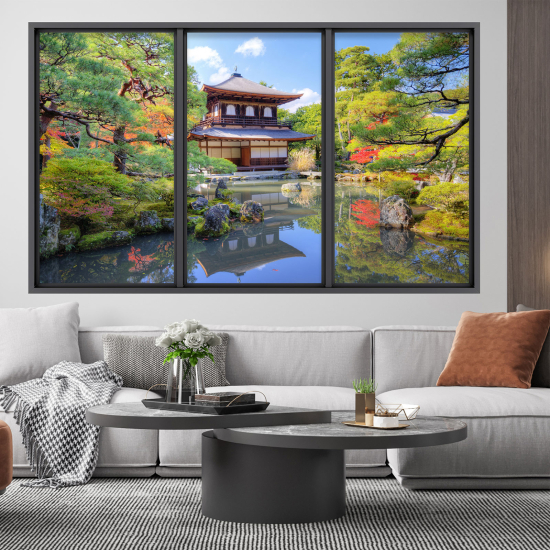 www.lumalea.de > Aufkleber > Wandtattoos 3D-Effekt > Aluminium-Fensteraufkleber 3D-Effekt > 3D Wandtattoo - Optische Täuschung - Japanischer Tempel