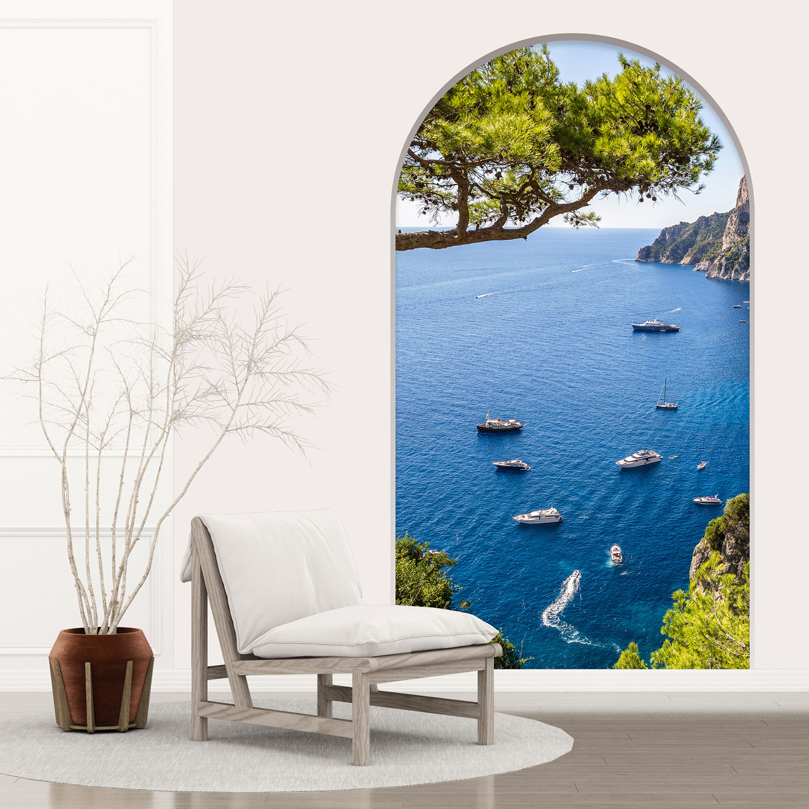www.lumalea.de > Aufkleber > Wandtattoos 3D-Effekt > Wandtattoos Rundbogen > Modell 1 > 3D Wandtattoo - Optische Täuschung - Meerblick