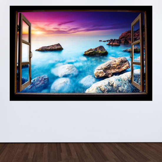 www.lumalea.de > Aufkleber > Wandtattoos 3D-Effekt > Holzfensteraufkleber > 3D Wandtattoo - Optische Täuschung - Meerblick