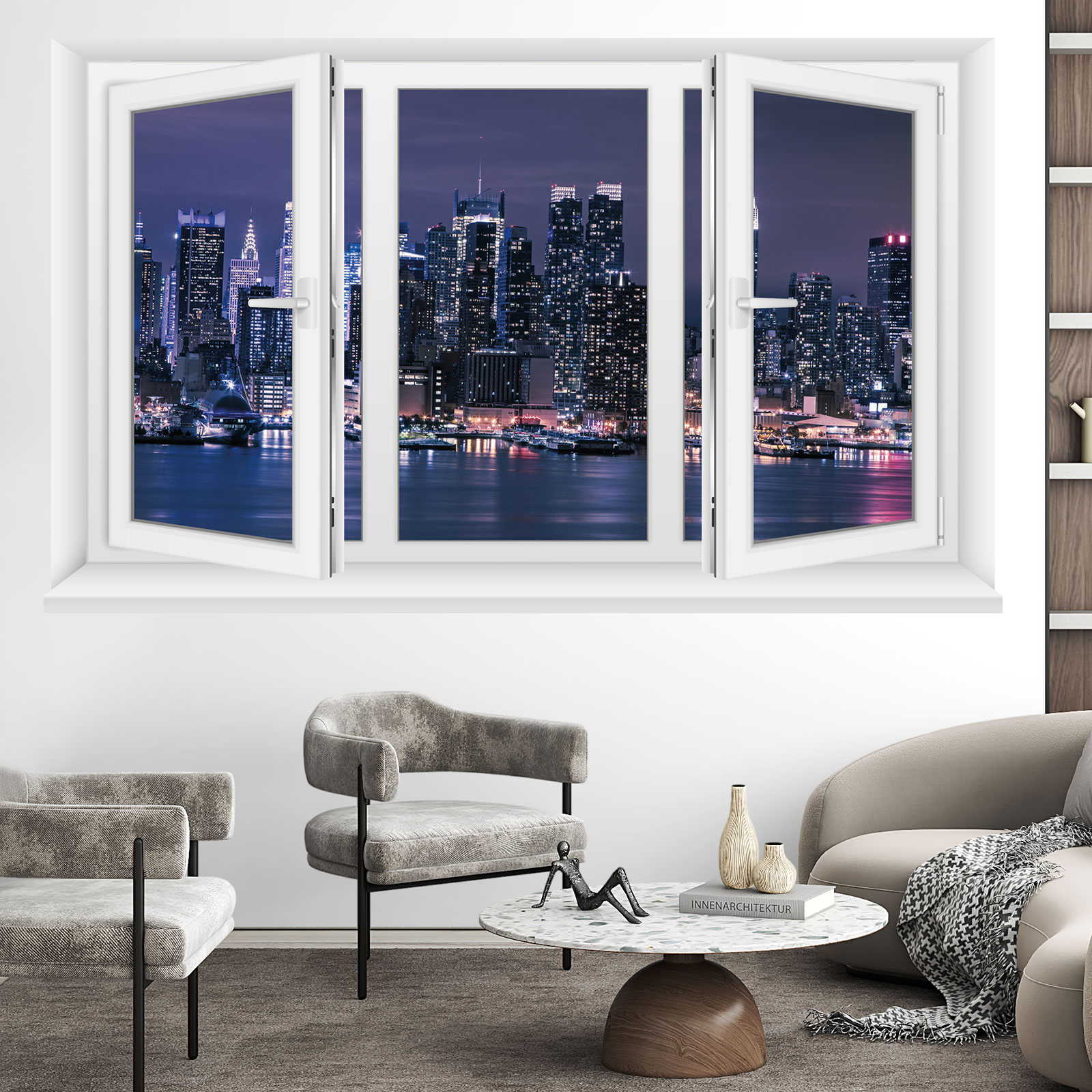 www.lumalea.de > Aufkleber > Wandtattoos 3D-Effekt > Fensteraufkleber 1 > 3D Wandtattoo - Optische Täuschung - New York