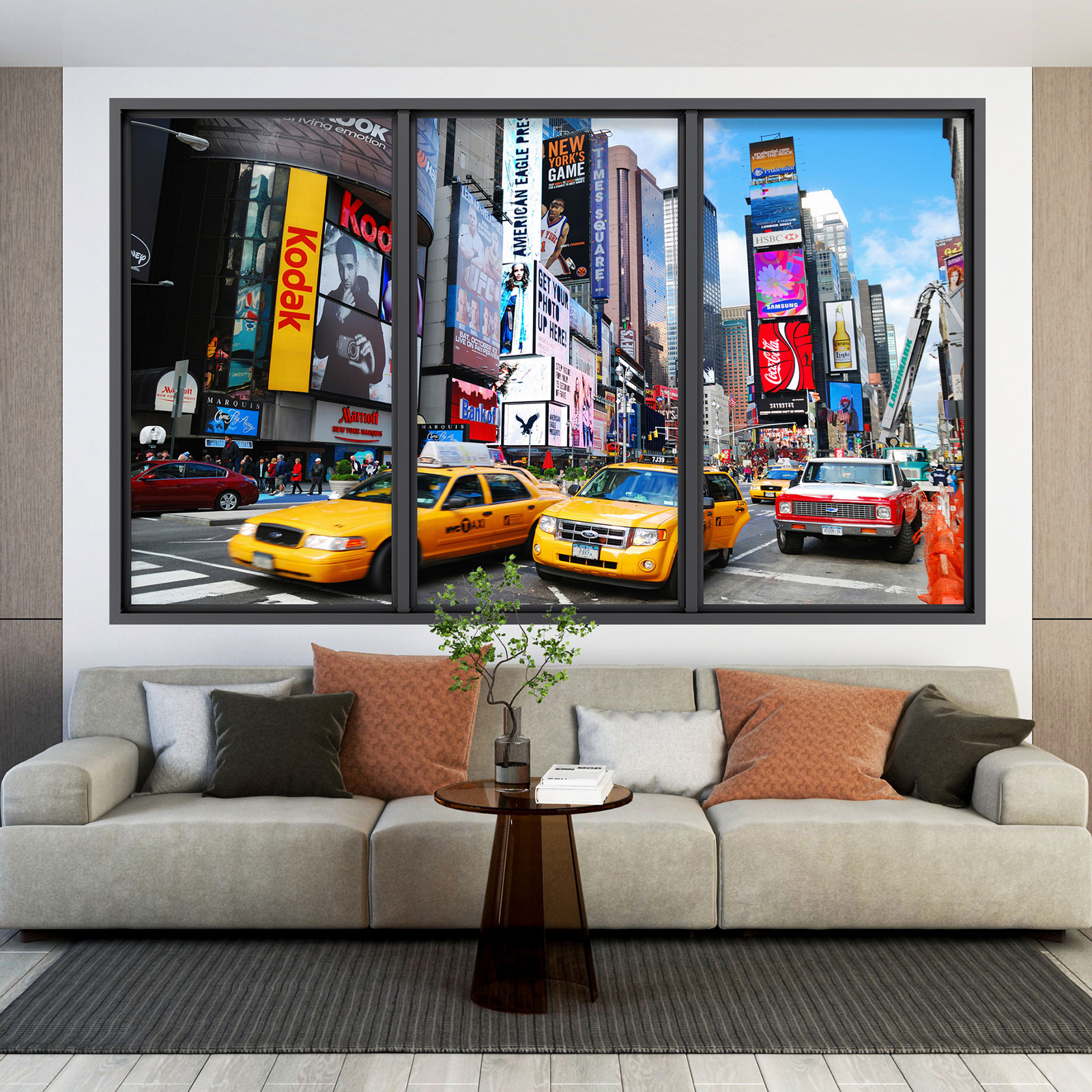 www.lumalea.de > Aufkleber > Wandtattoos 3D-Effekt > Aluminium-Fensteraufkleber 3D-Effekt > 3D Wandtattoo - Optische Täuschung - New Yorker Taxis