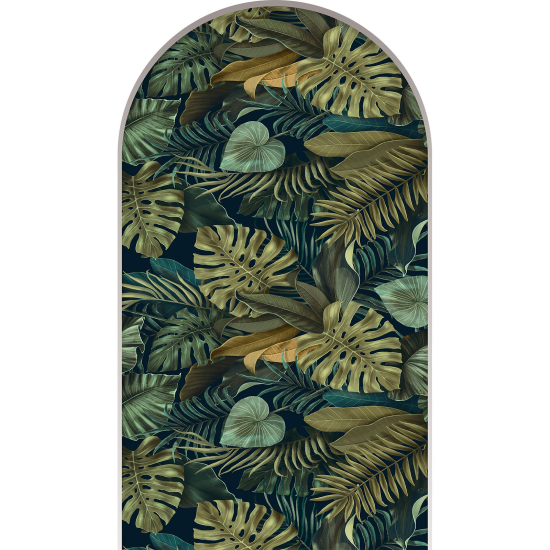 www.lumalea.de > Aufkleber > Wandtattoos 3D-Effekt > Wandtattoos Rundbogen > Modell 1 > 3D Wandtattoo - Optische Täuschung - Tropische Blätter