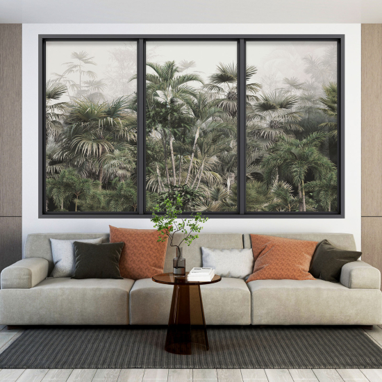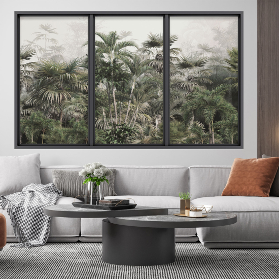www.lumalea.de > Aufkleber > Wandtattoos 3D-Effekt > Aluminium-Fensteraufkleber 3D-Effekt > 3D Wandtattoo - Optische Täuschung - Tropischer Wald