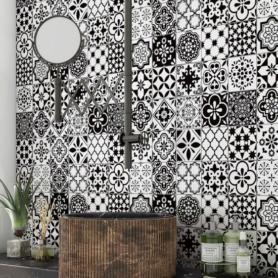 www.lumalea.de > Aufkleber > Selbstklebende Badezimmer-Wandpaneele > Fliesenaufkleber > Aufkleber Badezimmer - Zementfliesenmuster