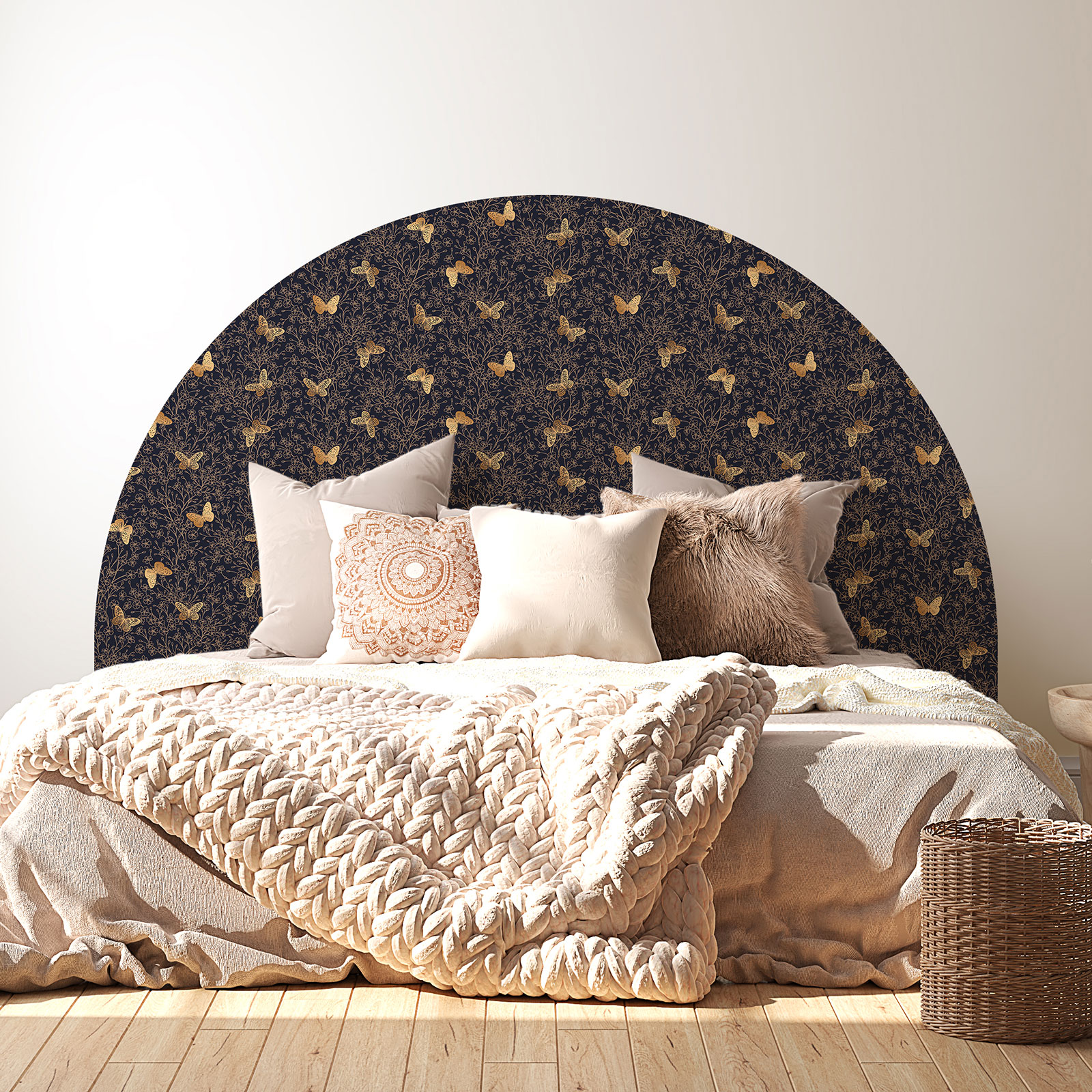 Zentrales Dekorelement: Das Kopfteil ist oft der Mittelpunkt des Schlafzimmers. Unsere Wandsticker in Bogenform schaffen ein zentrales Dekorelement und verleihen Ihrem Ruhebereich eine warme und einladende Atmosphäre.