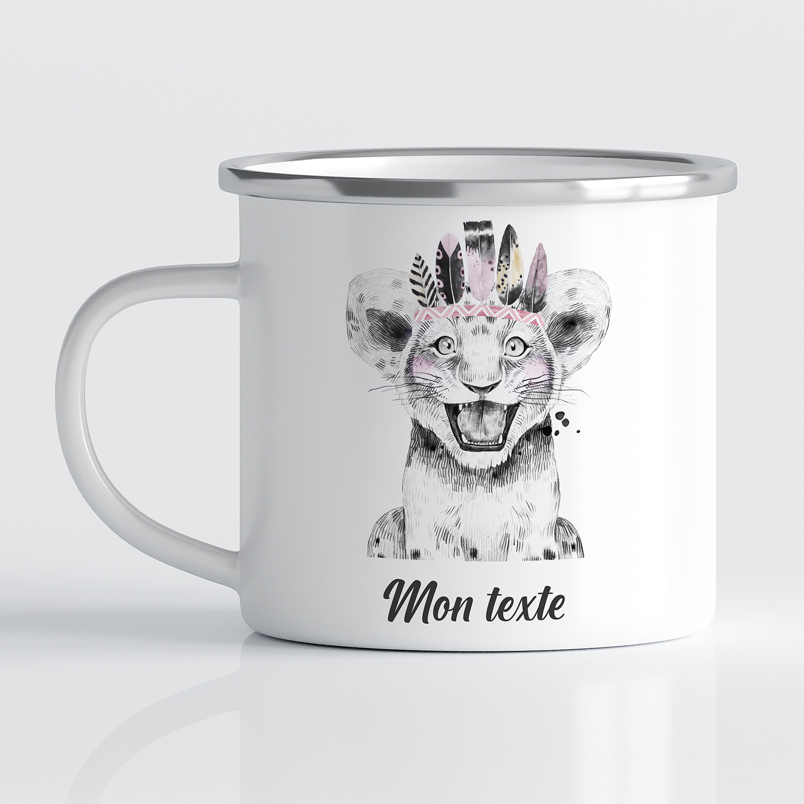 Emaille tasse personalisiert für Kinder - Indischer Löwe
