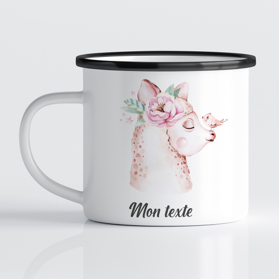 Emaille tasse personalisiert für Kinder - Lama Vogel