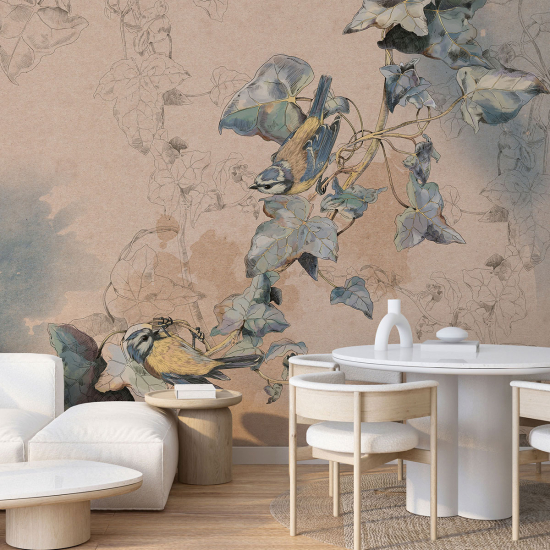 Fototapete - Blumen Vögel