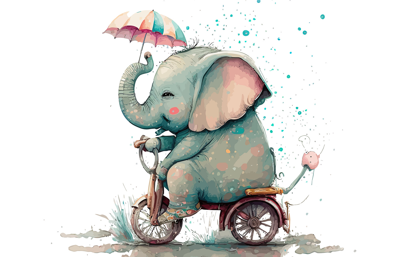 Fototapete Kinderzimmer - Elefant auf dem Fahrrad
