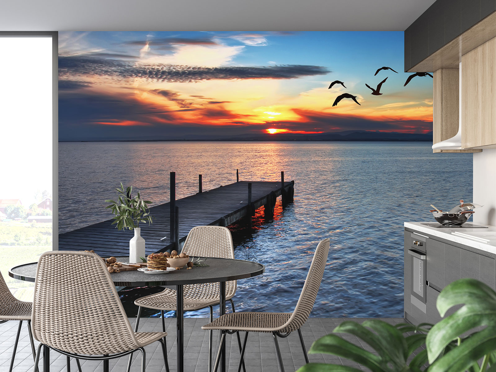 www.lumalea.de > Tapeten > Panoramische Tapeten > Rund um das Meer > Fototapete - Ponton Sonnenuntergang