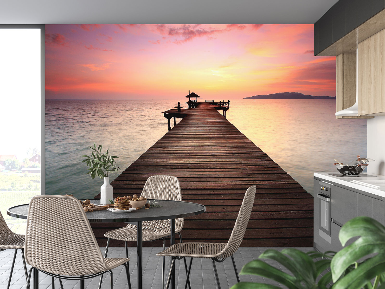 www.lumalea.de > Tapeten > Panoramische Tapeten > Rund um das Meer > Fototapete - Ponton Sonnenuntergang