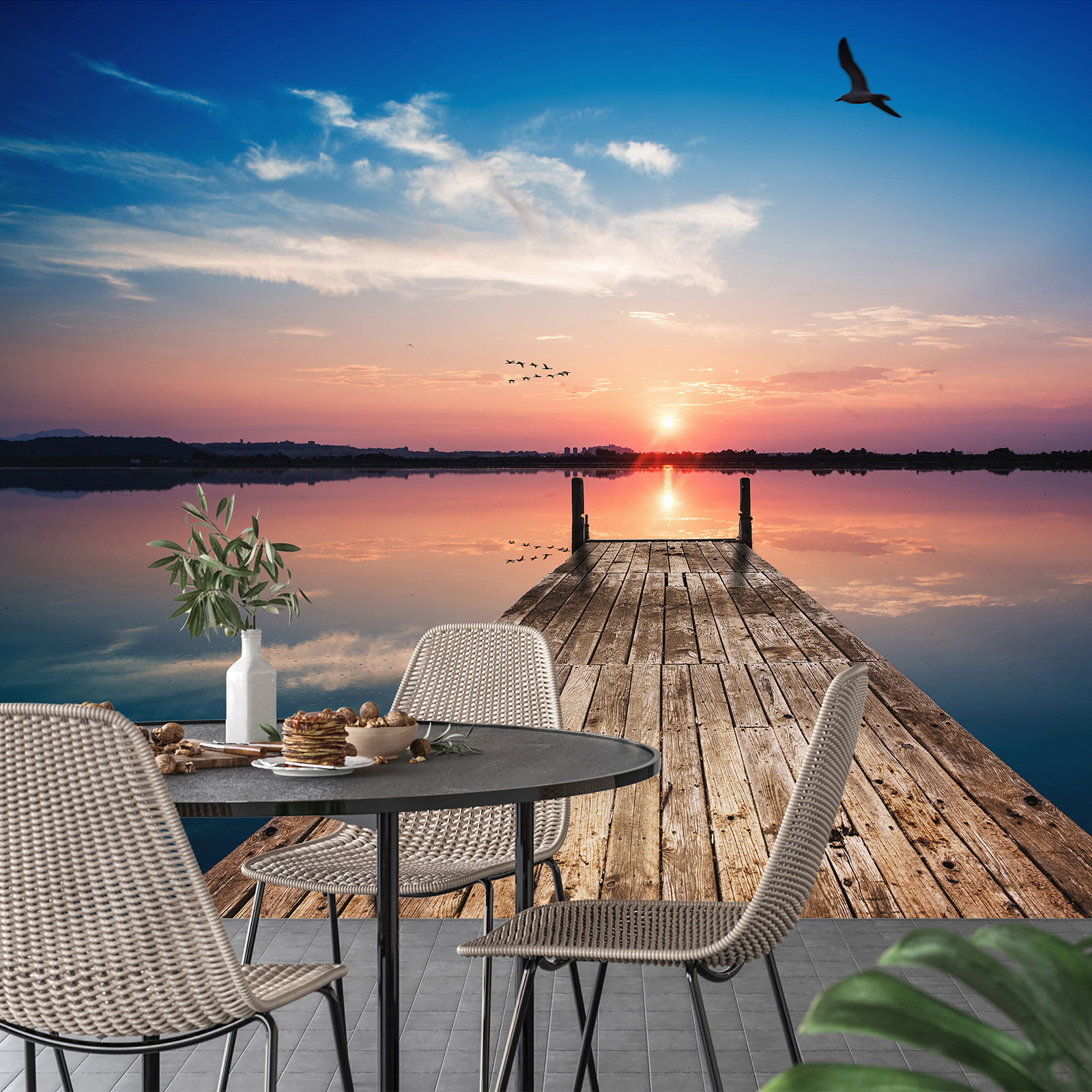 www.lumalea.de > Tapeten > Panoramische Tapeten > Rund um das Meer > Fototapete - Ponton Sonnenuntergang