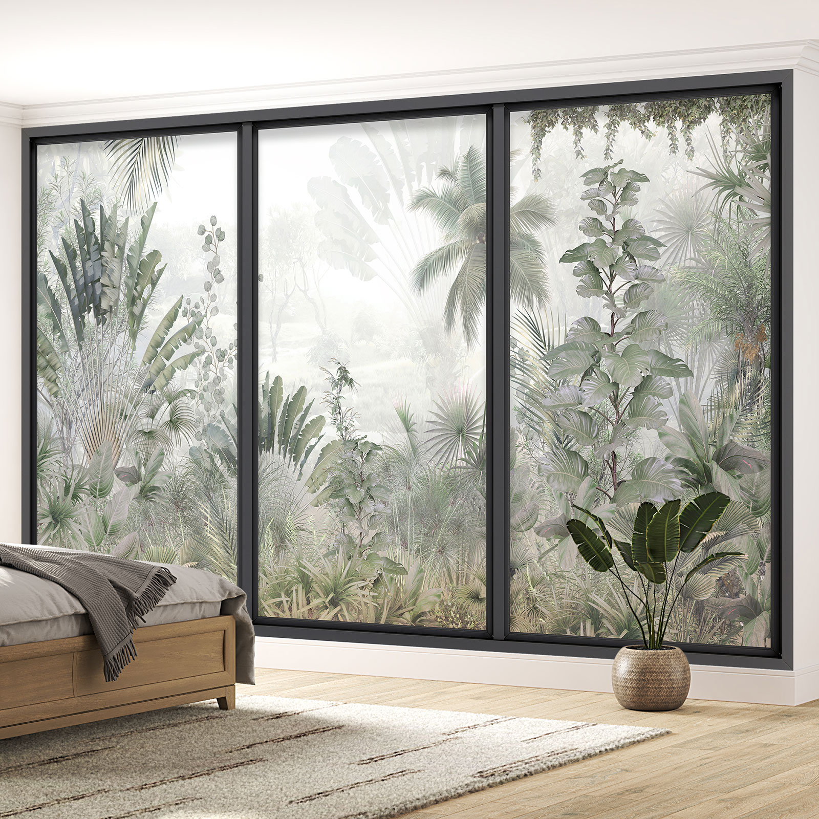 www.lumalea.de > Tapeten > Panoramische Tapeten > Tapeten 3D-Effekt > Fensterfronten 3D-Effekt > Fototapeten 3D Optische Täuschung - Dschungel