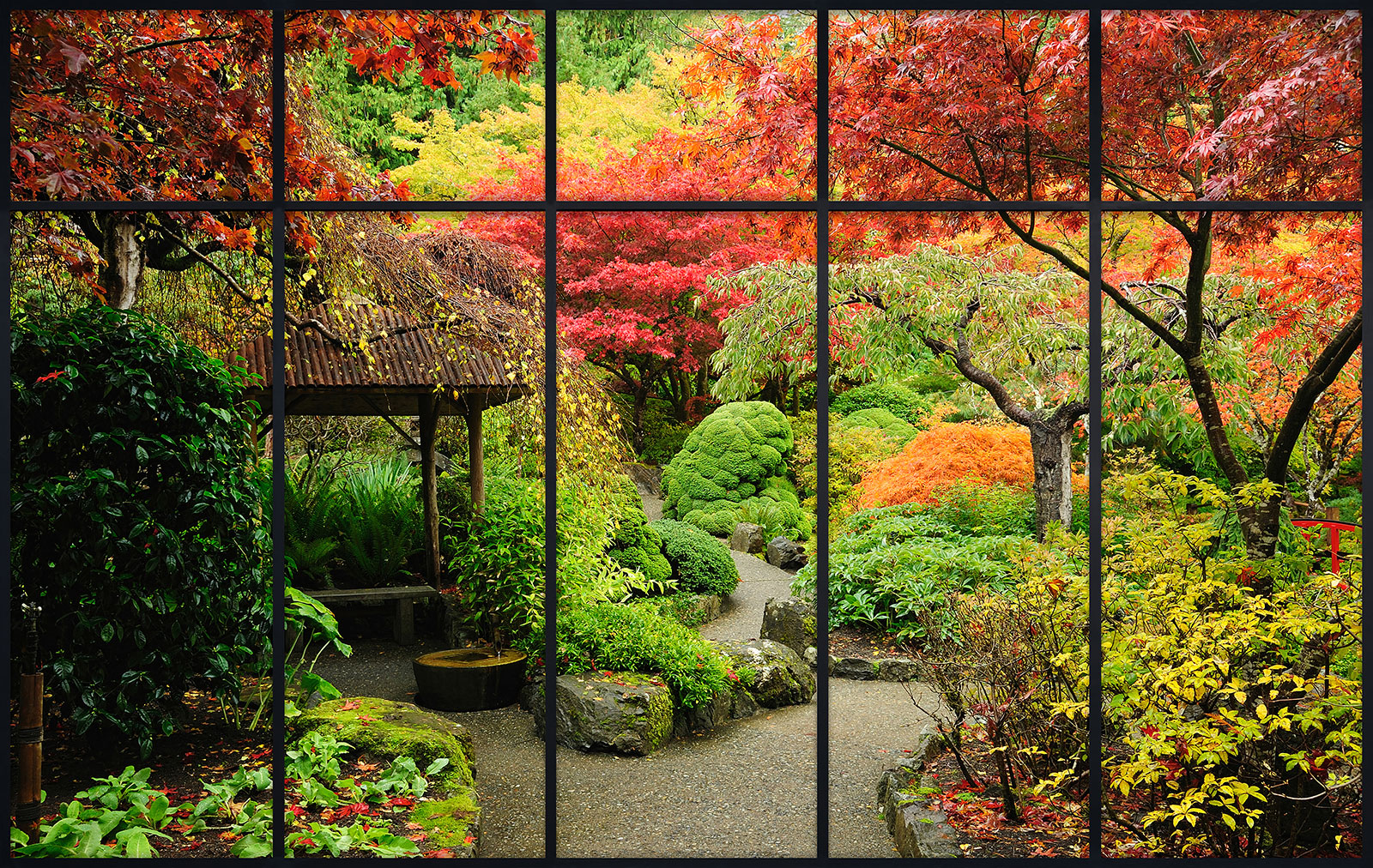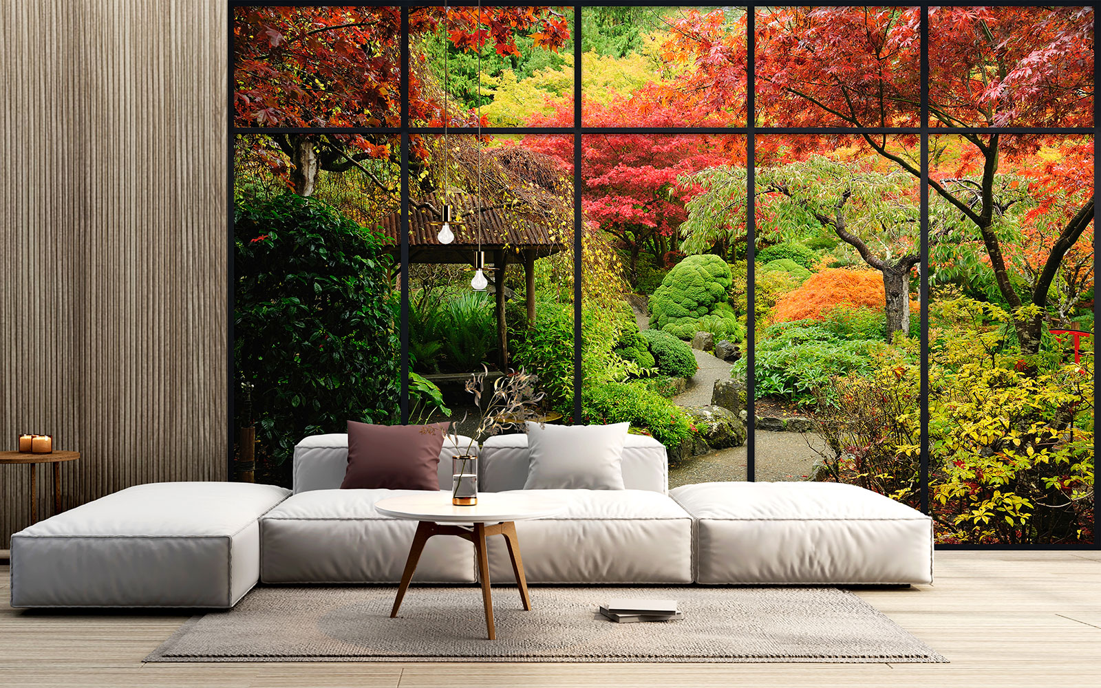 www.lumalea.de > Tapeten > Panoramische Tapeten > Tapeten 3D-Effekt > Glaswände 3D-Effekt > Fototapeten 3D Optische Täuschung - Garten