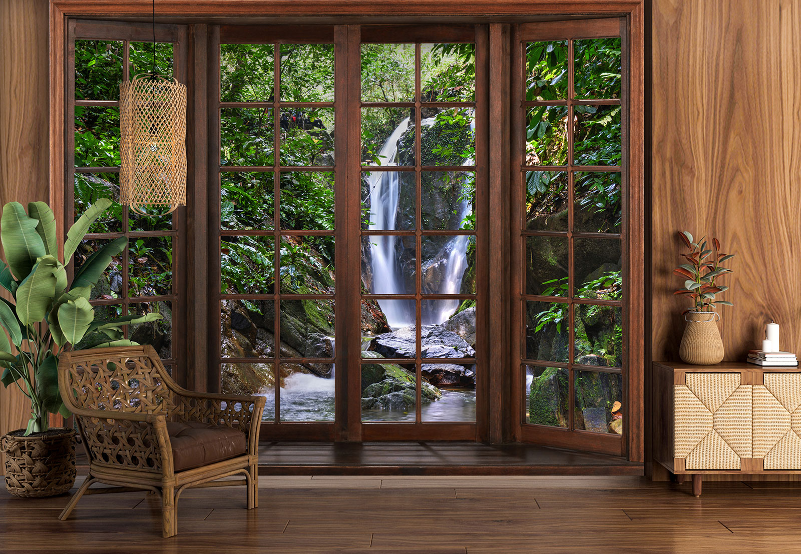 www.lumalea.de > Tapeten > Panoramische Tapeten > Tapeten 3D-Effekt > Fenster 3D-Effekt > Fototapeten 3D Optische Täuschung - Kaskaden