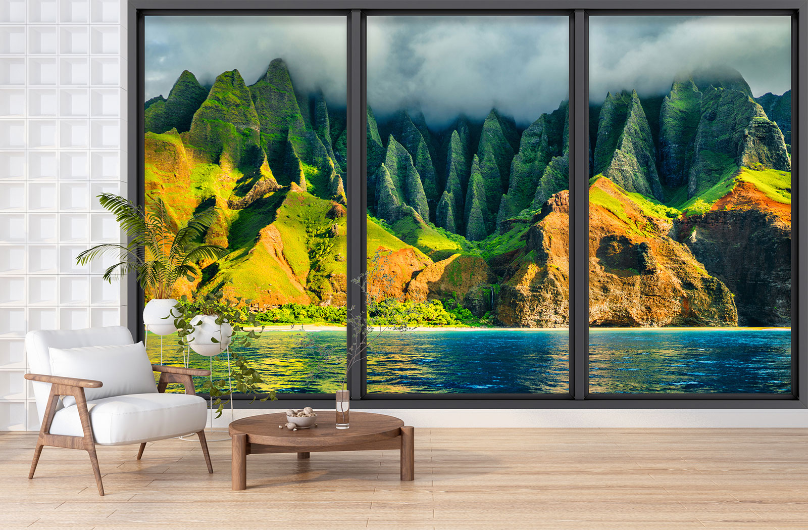Fototapeten 3D Optische Täuschung - Meer und Berge