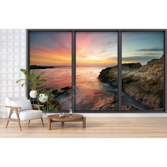 www.lumalea.de > Tapeten > Panoramische Tapeten > Tapeten 3D-Effekt > Fensterfronten 3D-Effekt > Fototapeten 3D Optische Täuschung - Meerblick