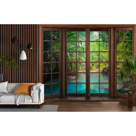 www.lumalea.de > Tapeten > Panoramische Tapeten > Tapeten 3D-Effekt > Fenster 3D-Effekt > Fototapeten 3D Optische Täuschung - Paradiesischer Fluss
