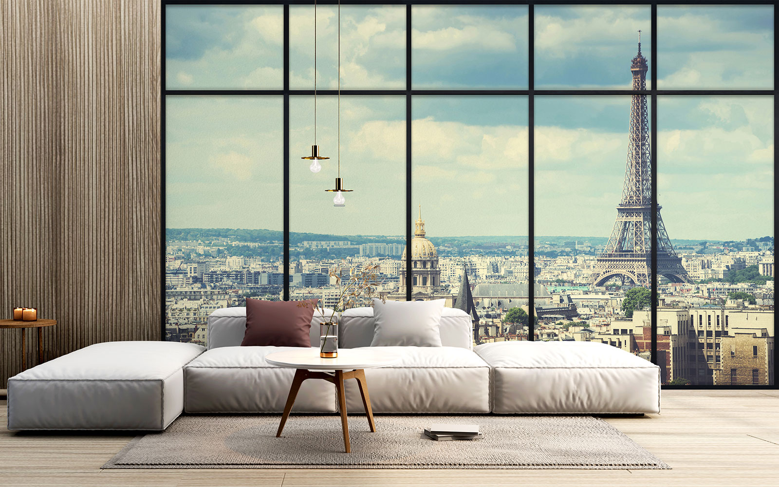 www.lumalea.de > Tapeten > Panoramische Tapeten > Tapeten 3D-Effekt > Glaswände 3D-Effekt > Fototapeten 3D Optische Täuschung - Paris Eiffelturm