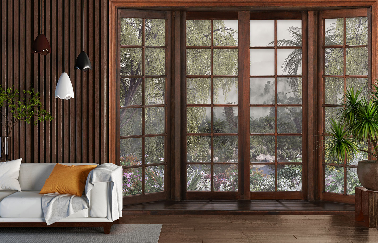 www.lumalea.de > Tapeten > Panoramische Tapeten > Tapeten 3D-Effekt > Fenster 3D-Effekt > Fototapeten 3D Optische Täuschung - Tropischer Regenwald