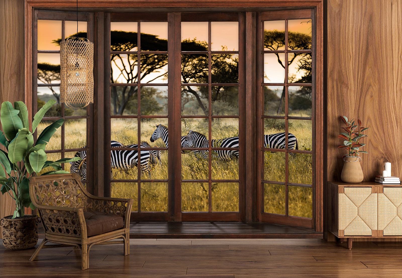 www.lumalea.de > Tapeten > Panoramische Tapeten > Tapeten 3D-Effekt > Fenster 3D-Effekt > Fototapeten 3D Optische Täuschung - Zebras