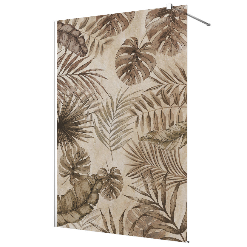 www.lumalea.de > Aufkleber > Aufkleber für die Glasdusche > Volle Modelle > Glasdekor Dusche, Druck auf Sandstrahlfolie - Tropische Blätter
