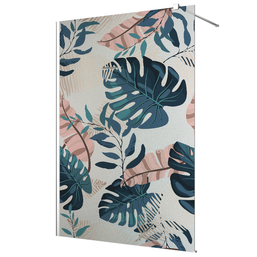 www.lumalea.de > Aufkleber > Aufkleber für die Glasdusche > Volle Modelle > Glasdekor Dusche, Druck auf Sandstrahlfolie - Tropische Blätter