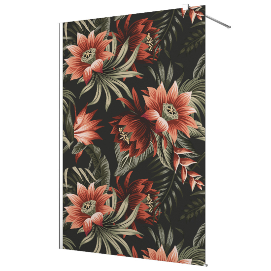 www.lumalea.de > Aufkleber > Aufkleber für die Glasdusche > Volle Modelle > Glasdekor Dusche, Druck auf Sandstrahlfolie - Tropische Blumen
